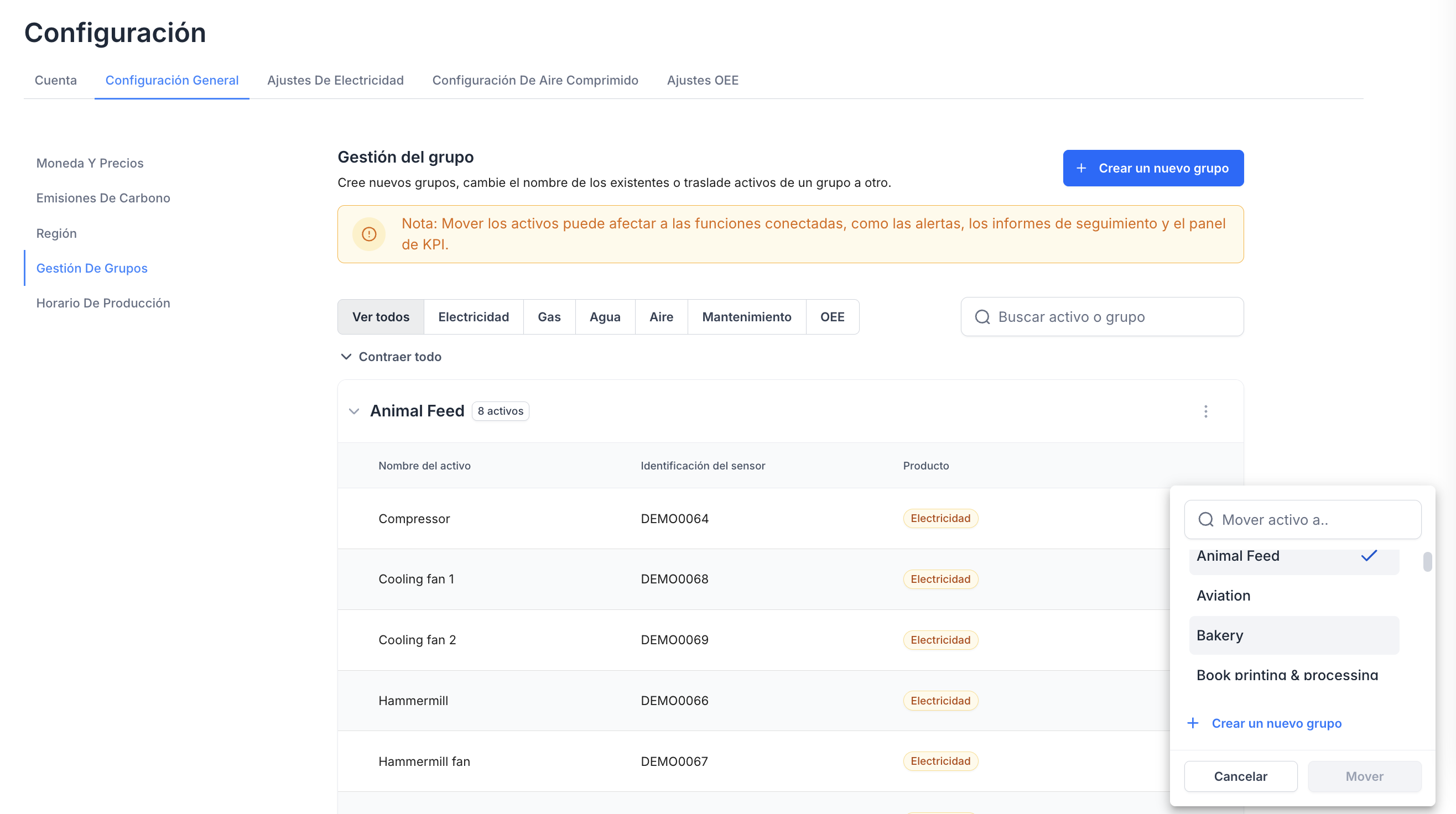 Mover activos entre grupos