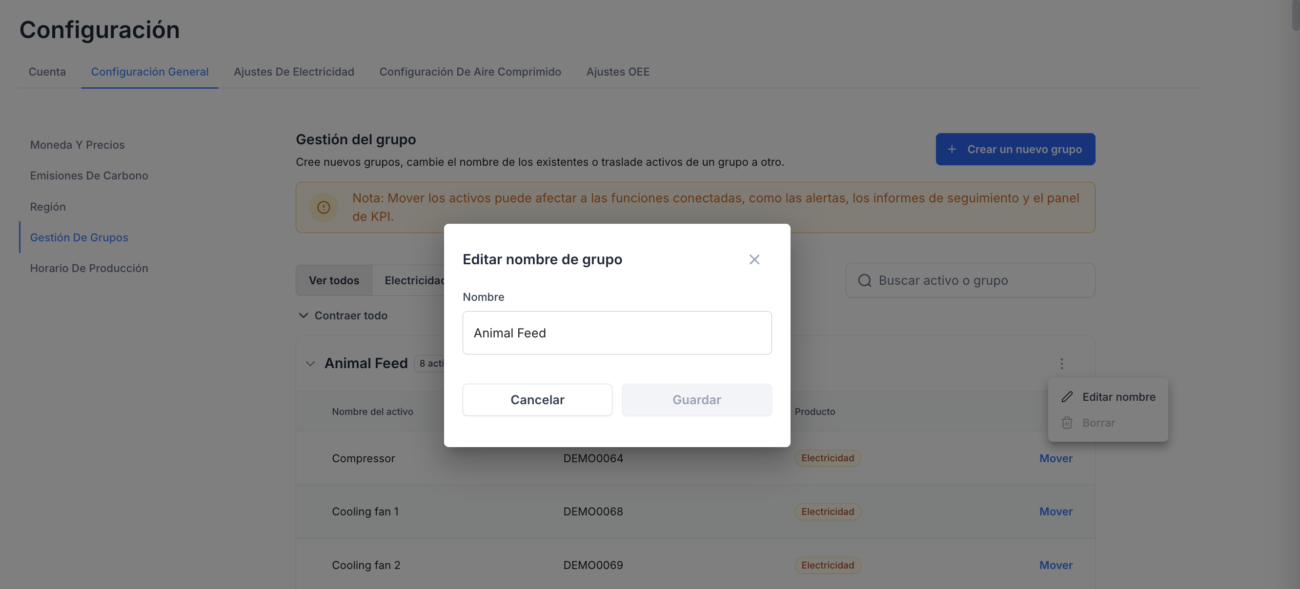 Mover activos entre diferentes grupos
