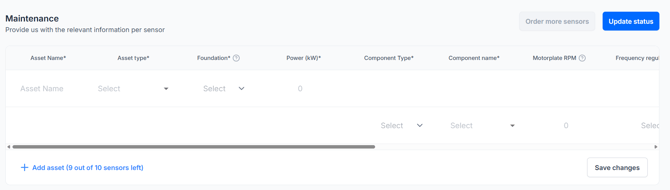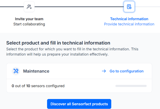 Haga clic en Ir a configuración para comenzar a configurar sus activos. El número de sensores ya ha sido preestablecido según su contrato.