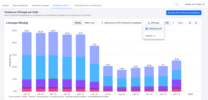 - Active le Détail par actif pour afficher la consommation d’énergie par actif individuel plutôt que le total