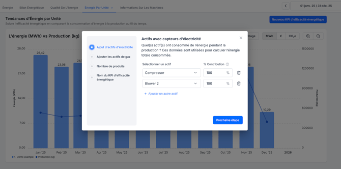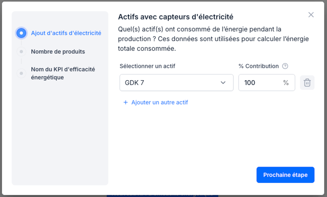 - (Le cas échéant) Sélectionne les actifs de comptage qui suivent la production ; ou sélectionne la fréquence si tu importes les données de production manuellement ou via CSV ;