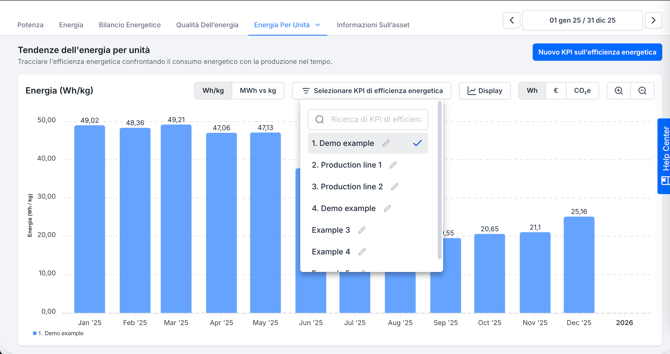 - Seleziona il KPI sull’efficienza energetica che desideri visualizzare.