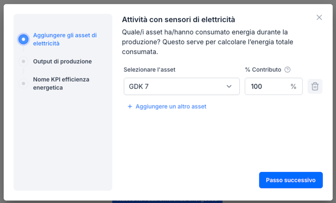- (Se applicabile) Seleziona gli asset che consumano gas;