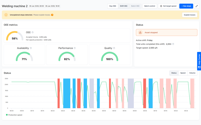 - OEE - Full Screen Mode for Production Floor Clarity: You can now view the OEE Operator View and Asset Overview in full screen. Designed specifically for shop-floor displays, this mode removes browser distractions and scrolling to ensure your most critical production data is always front and center.