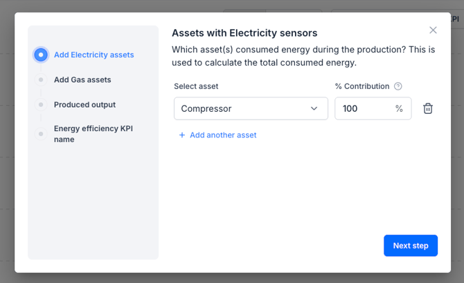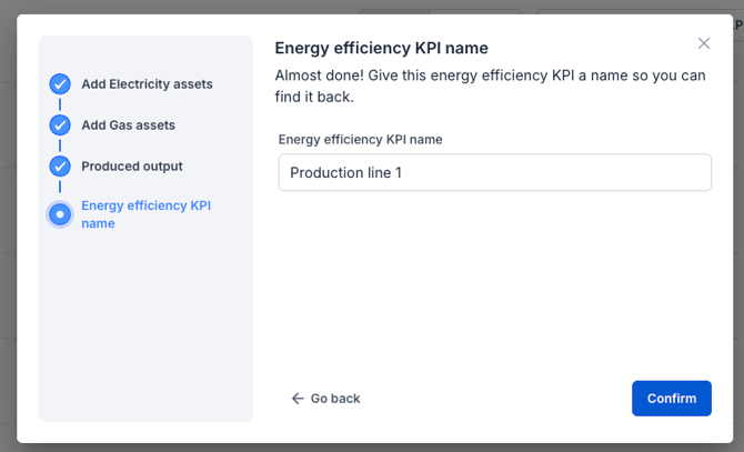 - Click “Create new energy efficiency KPI.” A setup dialog appears.
