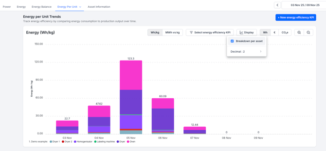 - Enable ‘Breakdown per asset’ to view energy consumption per individual asset instead of the total